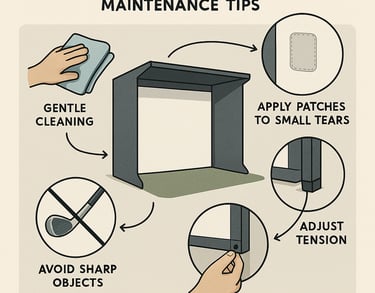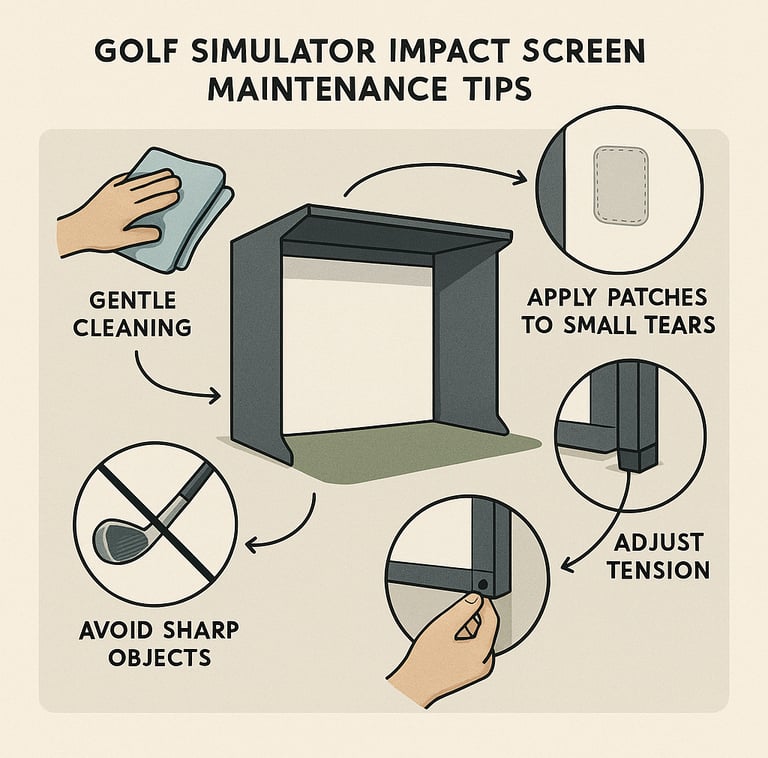 Regularly inspect mounts, fasteners, screen fabric, and tensioning cords for wear and tighten or replace as needed. A properly maintained setup reduces injury risk and prolongs simulator life.