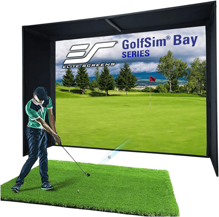 The Elite Screens GolfSim Bay is better for complete systems where you want everything to work together out of the box.